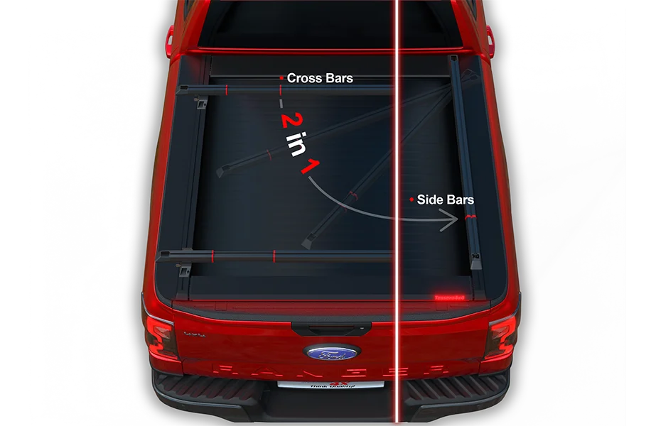 Première mondiale : La Tessera Bar+ est le tout premier système de barres transversales télescopiques pour camions pickup pouvant se transformer en rampes latérales en moins d'une minute, sans aucun outil.